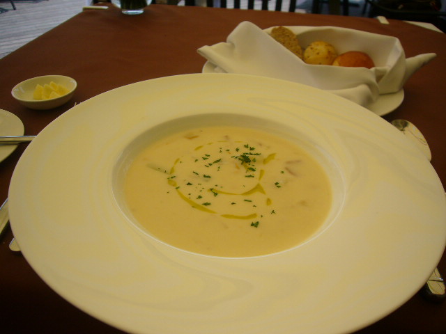 シェフお薦めのボストンクラムチャウダースープ。シェフお薦めだけあって、美味しい!結構ボリュームもあります。パンもいろいろ入っていて美味しいのです。